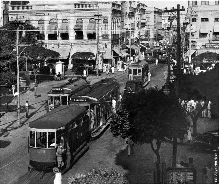 A imagem acima (da coleção do pesquisador Allen Morrison, de New York), é de um cartão postal do início do século XX, que circulava ainda em 1954, com a estação dos bondes junto ao Arco de Santo Antônio.